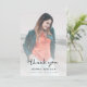 Les funérailles photo modernes et minimalistes vous remercient de l'amour et des remerciements de l'express après la célébration de la vie de votre être aimé dans un style épuré minimaliste simple design avec une police manuscrite et un arrière - plan gris colombe souple. Le modèle peut facilement être personnalisé avec votre propre photo et texte pour créer un hommage spécial pour les funérailles, le mémorial ou la célébration de la vie de votre proche. L'image montrée n'est à des fins d'illustration que pour être remplacée par votre propre photo. L'image de l'espace réservé montre une jeune femme aux cheveux bruns ondulés et longs portant une veste en cuir, une dentelle orange et un jean blanc. #funérailles #thankyou