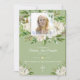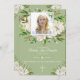 Honorer les beaux souvenirs et célébrer la vie de votre chéri avec notre élégante célébration de la vie funéraire carte de remerciements. Dans un cadre verdoyant et serein, des roses blanches délicates et un feuillage verdoyant créent une atmosphère paisible, symbolisant l'amour éternel et le souvenir. Au premier plan, une photo émouvante de votre être aimé est accompagnée des mots sincères "In Loving Memory of" suivi du nom et des dates de votre être aimé, magnifiquement présenté à côté d'une croix solennelle. Cet hommage poignant reflète l'essence de l'esprit de votre être aimé et son impact durable sur tous ceux qui les connaissaient. A l'inverse, un arrière - plan vert tranquille orné d'une gracieuse bordure florale de rose blanche offre une toile parfaite pour exprimer gratitude et réflexions. Avec un espace suffisant pour les poèmes funéraires, les versets, les prières et un message de remerciement sincère, cette carte devient un souvenir poignant, incarnant les souvenirs chers partagés entre la famille et les amis. Que ce soit lors des funérailles et des cérémonies commémoratives ou en signe d'appréciation pour les êtres chers, notre célébration de la vie funéraire est une expression sincère du souvenir et de la gratitude, assurant que l'héritage de votre bien-aimé demeure dans le coeur de tous ceux qui le reçoivent.