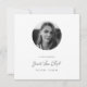 Ce simple enterrement et condolence, merci note, est entièrement personnalisable. L'exemple de texte est noir, mais vous pouvez modifier la couleur du texte, la police et la taille du texte si vous le souhaitez. Nous avons inclus une fine ligne autour du texte avant. Cette ligne est gris clair par défaut, mais vous pouvez changer sa couleur ou la supprimer si vous voulez un look plus simple. Remplacez la photo à l'arrière, s'il vous plaît. Pour notre échantillon de photo, nous avons en fait commencé avec une photo couleur et l'avons faite en noir et blanc avec le filtre noir et blanc, qui est maintenant le paramètre par défaut. Votre photo en couleur apparaîtra aussi en noir et blanc. Mais vous pouvez facilement désactiver ce filtre si vous préférez garder votre photo couleur telle quelle.