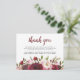 Carte de remerciements funéraire avec d'élégantes flores bordeaux et roses, et un simple modèle d'appréciation pour vous de personnaliser.