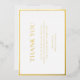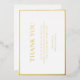 Carte de remerciements classique de sympathie pour un service funéraire / mémorial avec un design simple et traditionnel avec une fine bordure avec le "Merci" et votre message dans une véritable feuille d'or. Utilisez le modèle pour ajouter facilement votre message personnalisé.