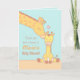 Express thanks to guests for their presence at the baby shower with this cute thank you greeting card! Il y a un dessin de mommy giraffe giving a kiss on her baby giraffe who is happily receiving mum's affection. The cute calf has a baby pader in its mouth and is wearing diapers. Gender neutre colours of largely yellow and orange which is uit for both baby boy and girl!