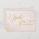 Parties scintillant de flamme rose or main lettering calligraphie merci design et points d'or confetti sur pastel blush aquarelle arrière - plan, joli effet de parties scintillant d'or rose faux métallique, moderne, chic, élégant et classe, parfait pour mariage vintage ou mariage de printemps. Personnalisez votre propre carte de remerciements pour votre mariage ! Voir toutes les pièces correspondantes dans cette collection de calligraphie de parties scintillant d'or rose rousse ci-dessous.