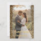 Perfect for summer or autumn weddings, this design beautifully balances rustic charm with modern glamour. The front displays your names and wedding date in a stylish gold-tone geometric font, making it a wonderful keepsake for your guests. Easily personalize this template with your favorite wedding portrait and details to create a truly memorable message of thanks.