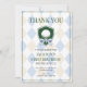 Carte de remerciement pour le 1er anniversaire de votre garçon Blue Golf Modern Hole In One est une façon moderne et sophistiquée de montrer votre gratitude après le grand jour de votre petit golfeur ! Avec un fond argyle bleu clair et beige, un blason de golf vert avec une balle et un nœud, et des polices ludiques et élégantes, cette carte est l'accompagnement parfait pour votre célébration sur le thème du golf.