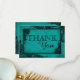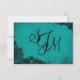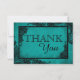 Dentelle noire gothique au-dessus d'arrière - plan grunge turquoise avec le carte de remerciements formel de monogramme.