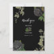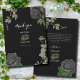 Un design gothique mariage de scénario Halloween avec des roses noirs et des vignes pendantes. Un design d'Halloween qui utilise des fleurs botaniques noires et sombres avec des typographies de calligraphie vintages. Un design gothique élégant idéal pour les thèmes mariages d'Halloween. Un mariage rose noir unique merci design. Des invitations de mariage et d'autres articles de papeterie sont également disponibles.