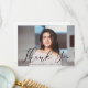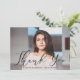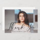 Carte de remerciements de graduation simple et élégante avec la photo horizontale du diplômé avec "Merci" dans une élégante superposition de script noir. Personnalisez le devant de la carte de remerciements de graduation en ajoutant le nom et l'année de graduation du diplômé. La carte s'inverse pour afficher votre message dactylographié ou manuscrit. Le carte de remerciements photo est parfait pour les diplômés du secondaire et du collège.