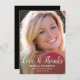 Envoyez un élégant carte de remerciements à votre famille et à vos amis pour les cadeaux de fin d'études à vous. Ce design présente votre photo sur le devant avec un script moderne qui lit. "Love & Thanks" en typographie noire avec votre nom et classe/année ci-dessous. Le dos de la carte est noir avec un message que vous pouvez personnaliser ou supprimer. Conçu par l'artiste ©Susan Coffey. Photographie © Storytree Studios, Stanford, CA.