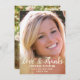 Envoyez un carte de remerciements à thème rustique à votre famille et à vos amis pour leurs cadeaux de fin d'études. Ce design présente votre photo sur le devant avec un script moderne qui lit. "Love & Thanks" en typographie blanche avec votre nom, l'école et la classe/année ci-dessous. L'arrière dispose d'un jardin rose avec des lampes à cordes. Conçu par l'artiste ©Tim Coffey. Photographie © Storytree Studios, Stanford, CA.