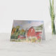 Grange Rouge Rustique Remerciement Aquarelle Campagnard - aquarelle originale par l'aquarelliste new-yorkaise, Deborah Radford. J'adore les changements de couleur de fin d'été. On passe du vert au doré doux, au brun et au rouge. Ce sont ces couleurs chaudes qui m'ont inspirée pour peindre cette scène.