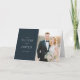 This wedding thank you card features a split design with a solid dark navy background on the left, elegantly complemented by white serif typography that adds a touch of sophistication. The right side showcases a softly focused photograph of two individuals against a warm, natural backdrop, evoking a dreamy and joyful atmosphere. The harmonious blend of text and imagery creates a balanced layout, perfect for expressing gratitude after a special occasion. With customizable placeholders for names and dates, this card is ideal for personalizing your post-wedding thanks in style.