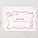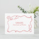 Express votre gratitude dans un style italien sans effort avec cette carte de remerciement pour le dîner That’s Amore. Doté d'une bordure dessinée à la main, d'une illustration de bouteille de vin vintage et d'un élégant script rouge, ce design saisit parfaitement le charme de La Dolce Vita. Personnalisez avec vos noms et la date pour une touche de coeur. Idéal pour des fêtes de vignoble, des soirées d'inspiration méditerranéenne et des dîners italiens romantiques. Complétez le look en l'appariant avec la coordination des invitations, des menus et des étiquettes de faveur de la collection complète.