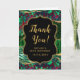 Ce safari vert et ce carte de remerciements d'anniversaire d'agate à thème tropical présentent des taches de léopard, des rayures de zèbre, des feuilles de palmiers et des fleurs. Le texte combine écriture manuscrite et polices sans serif modernes pour un look élégant et sophistiqué. Les faux accents de parties scintillant dorée et le poster de animal abstrait créent un mélange parfait de chic et de design.