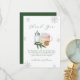 Cute adorable modern elegant winter baby shower theme, Holiday baby shower theme, design feature watercolor baby bottle, marshmello s'more mug, cookie, winter tree, silver snowflake and script calligraphy typography "Baby it's cold outside" in green color theme. you can customize your own unique text and color.