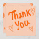 Add a warm, personal touch to your notes or business packaging with this charming hand-lettered "Thank You" design. Featuring a vibrant orange script and whimsical hand-drawn hearts on a soft peach background, this design is perfect for:
