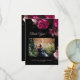 This elegant dark moody floral wedding thank you card features hand painted pink roses and a custom photo.