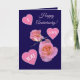 Carte De Remerciements Happy Anniversary/Hearts and Roses