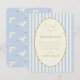 Thank your baby shower guests with this charming Harry Potter Hedwig baby shower design. Featuring Hedwig gracefully soaring above an elegant oval frame, this sweet and magical layout is set against soft blue and white vertical stripes for a classic boy baby shower look. Delicate gold accents and subtle star details add a whimsical, enchanted touch inspired by the Wizarding World.