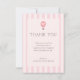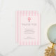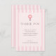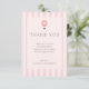 Joli carte de remerciements baby shower avec un arrière - plan rayé rose pastel associé à une montgolfière dessinée à la main et une police serif élégante dans laquelle vos informations personnalisées sont écrites. Vous pouvez trouver d'autres produits correspondants de cette collection dans notre magasin.
