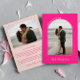 Carte de remerciements photo frappant à envoyer à vos invités mariages en rose chaud et blush. Carte de remerciements mariage double face avec deux photos, une dans un cadre en arc avec LOVE & THANKS écrit dans une courbe. Carte de remerciements mariage rose chaud avec vos noms dans un script de brosse rose vif moderne. Pink photo merci cartes pour les nouveaux mariés. Ajoutez votre propre message de remerciement personnel à l'arrière du carte de remerciements photo à double face.