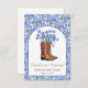Ces cartes de remerciement personnalisables comportent des fleurs bleues dans une paire de bottes de cowboy.