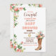 C'est un Baby shower de Cowgirl ! Baby shower invitation avec bottes de cowgirl. Baby shower à thème Cowgirl aux couleurs rose et marron avec illustrations de roses, bottes de cowboy.