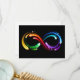 Symbol of infinity is artistically painted with fast moving, bright, luminous, rainbow colored comets with long flexible tails on black background. Rainbow infinity.