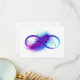 Infinity symbole with a beautiful feather painted in purple and blue bright colors on white background