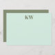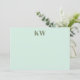 Carte de note personnalisée Initiales Monogramme vert de la menthe et de la tige moderne