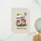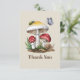 Carte de remerciement baby shower avec thème représentant une illustration de deux champignons entourés de papillon, insecte et escargot.