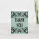 Elégant et chic Vintage Swirls Carte de remerciements avec un faux texturé en mauvais état vert jade arrière - plan et des bordures tourbillonnantes fleurissent. Ce design ancien est parfait pour un mariage à thème vintage. Facile à customiser, il suffit d'ajouter les détails de votre mariage dans les champs de texte fournis. Cliquez sur "Customiser" pour trouver d'autres options de personnalisation.