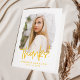 Carte de remerciements de graduation moderne et tendance avec la photo du diplômé à l'intérieur d'un cadre de masque texturé avec "Merci !" dans un script manuscrit jaune. Personnalisez le devant de la carte de remerciements de graduation en ajoutant le nom et l'année de graduation du diplômé. L'intérieur de la carte offre de l'espace pour votre message de remerciement dactylographié ou manuscrit.