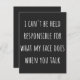 Carte De Remerciements je ne peux pas être tenu pour responsable de ce qu