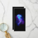 Grande méduse bleue, artistiquement dessinée, brillante, brillante, avec de longues tentacules sur arrière - plan noir avec bioluminescence violette. Méduse brillante.