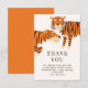 Pour le petit qui a célébré son anniversaire ou tout autre événement et qui souhaite envoyer un mot de remerciement aux invités. Si votre petit est un amoureux des animaux de safari ou de la jungle et en particulier des tigres, cette carte de remerciement est idéale. Vous pouvez inclure un mot de remerciement à vos invités de la part de votre petit tigre. Le texte 'MERCI' peut être conservé tel quel ou modifié pour un texte de longueur équivalente. L'autre texte peut être modifié pour un texte de votre choix. Cartes de remerciement sur le thème des tigres pour le petit tigre de votre vie.