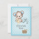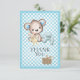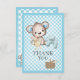 Envoyez ces adorables notes de remerciement à vos invités ; ils les aimeront. Un mignon ours brun en peluche sur un bébé bleu et blanc à damiers arrière - plan avec lapin lapin, éléphant et panier à pique-nique.