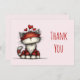 Carte de remerciement avec un dessin fantaisiste représentant un gros chat roux orange rouge.