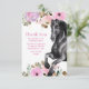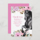 Ce carte de remerciements d'anniversaire de cheval présente un joli cheval noir avec des fleurs roses et violettes. Il peut être facilement personnalisé avec tous les détails de votre fête.