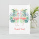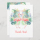 Joli conte de fées pour deux flamants roses - Carte de remerciement - Illustration aquarelle. Cadeau de jour de mariage. Deux beaux flamants roses, fleurs tropicales exotiques, feuillage, ornement floral jungle, jardin, été, jour de mariage, voyage, vacances, anniversaire (cadeaux pour eux, pour elle et pour lui). Invitations et papeterie > Cartes de vœux > Remerciements. Design élégant avec monogramme et modèle de texte. Personnalisez-les en ajoutant vos vœux texte et noms.