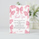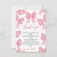 Exprimez votre gratitude avec style avec cette charmante carte de remerciement de fête prénuptiale à ruban rose coquette de Noël d'hiver. Caractérisée par un motif fantaisiste de rubans roses dessinés à la main, cette carte ajoute une touche ludique et féminine à votre message sincère. Les tons rose pâle doux et la typographie élégante la rendent parfaite pour une fête prénuptiale chic et festive. Idéale pour remercier les invités de leur présence et de leurs cadeaux, cette carte complète toute fête prénuptiale sur le thème coquette ou des fêtes.