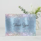 Carte De Remerciements Joli monogramme iridescent glace bleu faux paillet