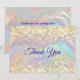 Jolie carte de remerciement iridescente à paillettes dorées artificielles. Carte de Noël scintillante et mignonne. Parfaite pour l'envoi à la famille ou aux amis pour la période des fêtes, les anniversaires ou toute autre occasion. Pour la rendre encore plus spéciale, elle est ornée de magnifiques paillettes artificielles. Ce motif peut également être transféré sur n'importe quel produit sur zazzle. Vous pouvez la personnaliser avec votre propre texte et informations.