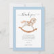 Merci aux amis et à la famille de vous avoir complètement gâté pendant votre baby shower. Cette carte est adorable et mignonne et dispose d'une belle aquarelle, vintage, cheval rustique rocking. Le carte de remerciements peut être personnalisé avec l'inclusion des détails de la mère et du père à être et l'autre texte de conception peut être conservé tel quel, édité ou supprimé.