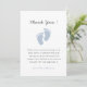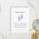 Jolie empreinte de bébé bleu Carte de remerciement de shower de bébé garçon avec message.