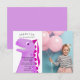 Carte de remerciement drôle et mignonne pour la fête d'anniversaire sur le thème des dinosaures de votre enfant. Illustration de style cartoon d'un dinosaure rose. Le T-Rex porte un petit chapeau de princesse rose. Au-dessus du T-Rex, il est écrit "Merci d'être passé". Sur le corps du dinosaure, un message remercie l'invité d'être venu et pour les cadeaux. Ajoutez le nom de votre enfant en bas. Le texte est facilement modifiable en ligne. Vous pouvez personnaliser davantage ce produit en ajoutant la photo de votre enfant.