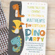 Composé d'une typographie manuscrite sans serif amusante; De mignons dinosaures T-REX en arrière-plan