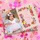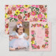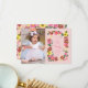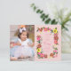 Envoyez cette jolie carte de remerciement à vos invités avec un petit lapin mignon avec des fleurs de marguerite et une illustration de petits lapins qui sautent pour le premier anniversaire de votre fille, un an. Le verso présente un motif floral rose sur toute la surface. Œuvre originale de Caroline Bonne Müller.