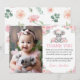 Exprimez votre gratitude avec cette jolie photo de koala pour fête d'anniversaire à fleurs roses carte de remerciement ! Avec un adorable koala, des accents floraux roses délicats et une verdure luxuriante, cette carte met magnifiquement en valeur la photo de votre enfant tout en remerciant les invités d'avoir rejoint la célébration d'anniversaire de la fille. Un souvenir doux et mémorable pour montrer votre appréciation !