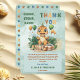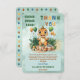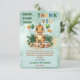 Tellement excitant ! Où est passée la dernière année ? Elle a filé, n'est-ce pas ? Il est temps de célébrer votre petit bout de chou à la manière préhistorique avec ce mignon design "Chomp, Stomp, Rawr !" "Notre petit dinosaure adorable fête son 1er anniversaire" pour la fête du premier anniversaire d'un garçon. Parfaitement coordonné en tons naturels de vert foncé, de bleu foncé, de rouille, de beige sable et de bleu sarcelle pâle et atténué, il crée la mise en scène parfaite pour votre célébration sur le thème préhistorique. Le petit dinosaure mignon a un grand sourire sur son visage alors qu'il porte un chapeau de fête, des bougies allumées et est entouré de cadeaux et de ballons sur un fond de verdure sur le thème de la jungle. Les lettres de "Dinosaure" et l'âge "1" sont réalisées dans une typographie personnalisée sur le thème des dinosaures. Le tout est mis
